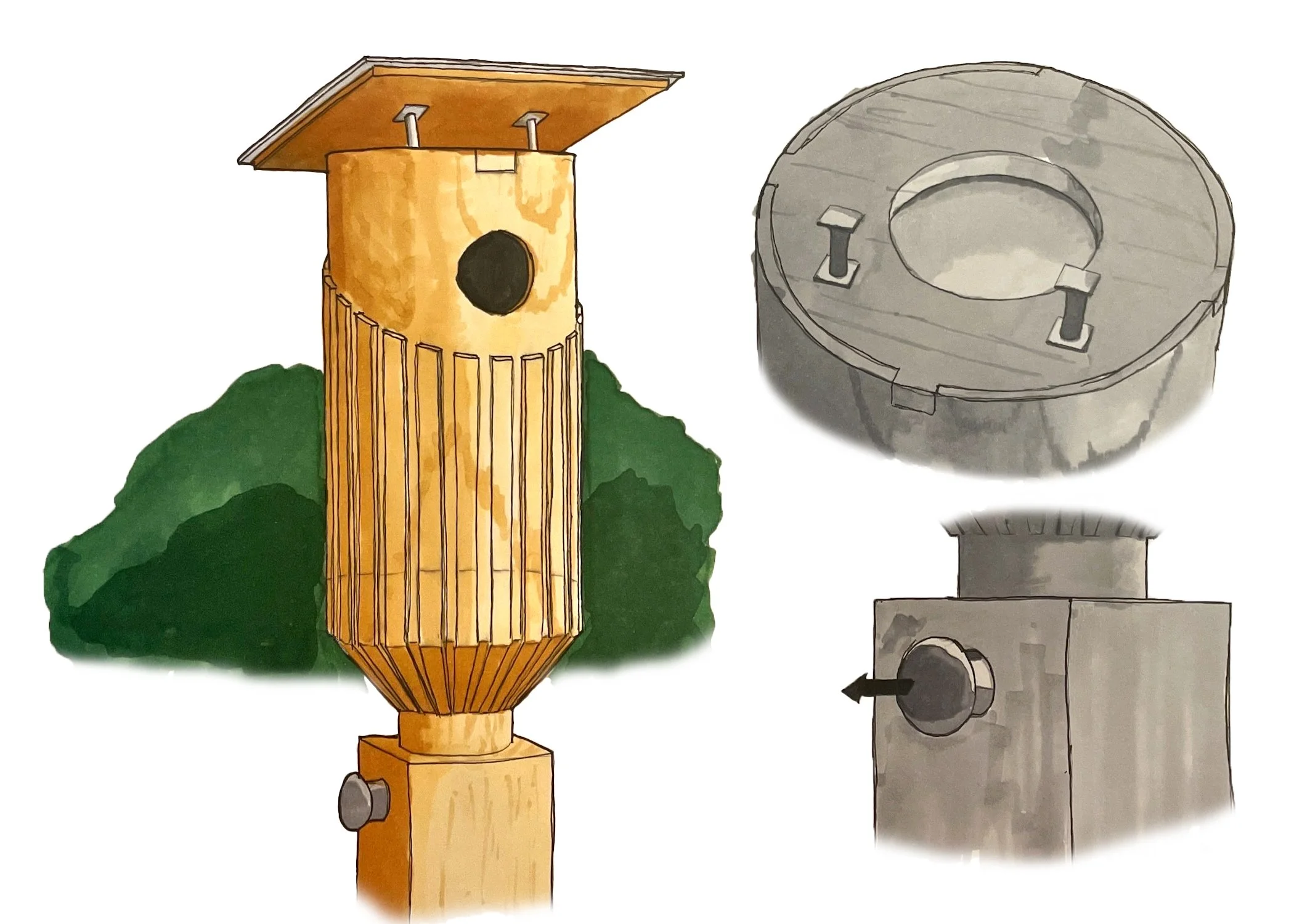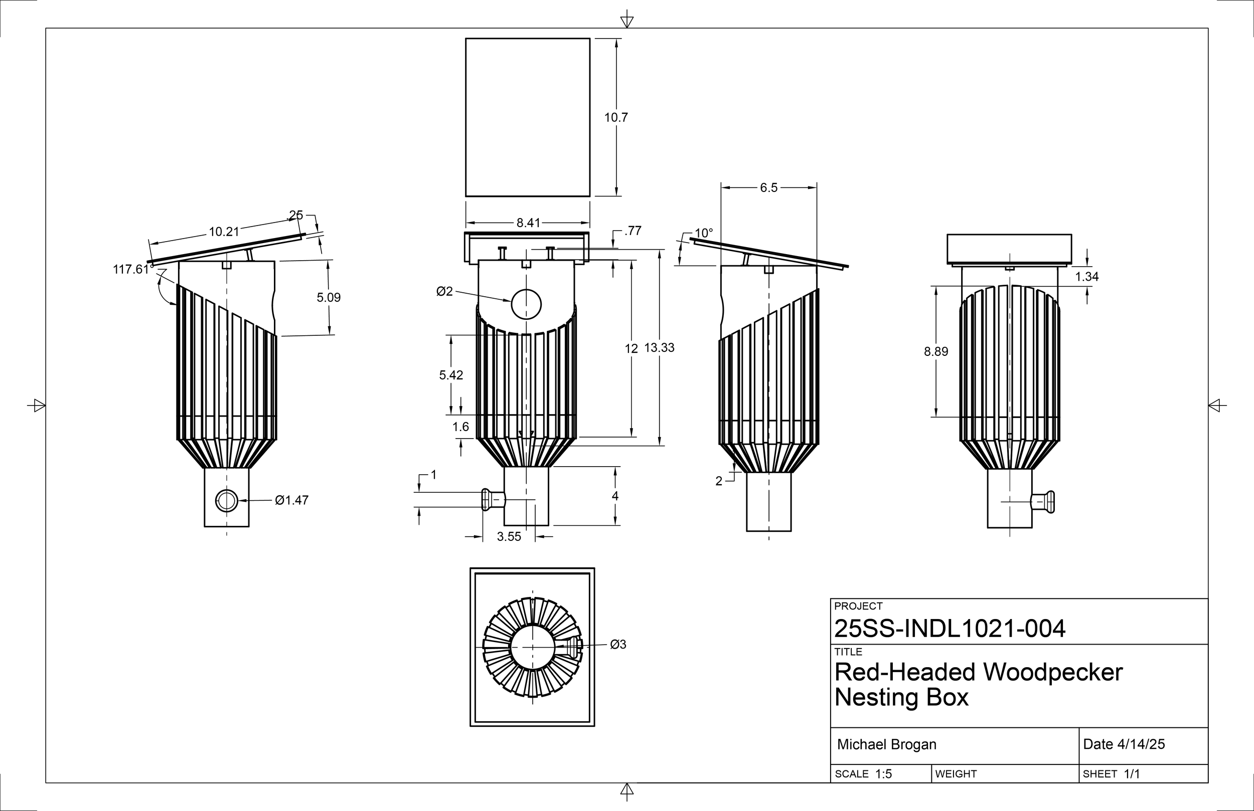 This final drawing would soon lead into the model making and even further into the fusion model. This drawing was used to show the look I was going for and some of the functions of the birdhouse.