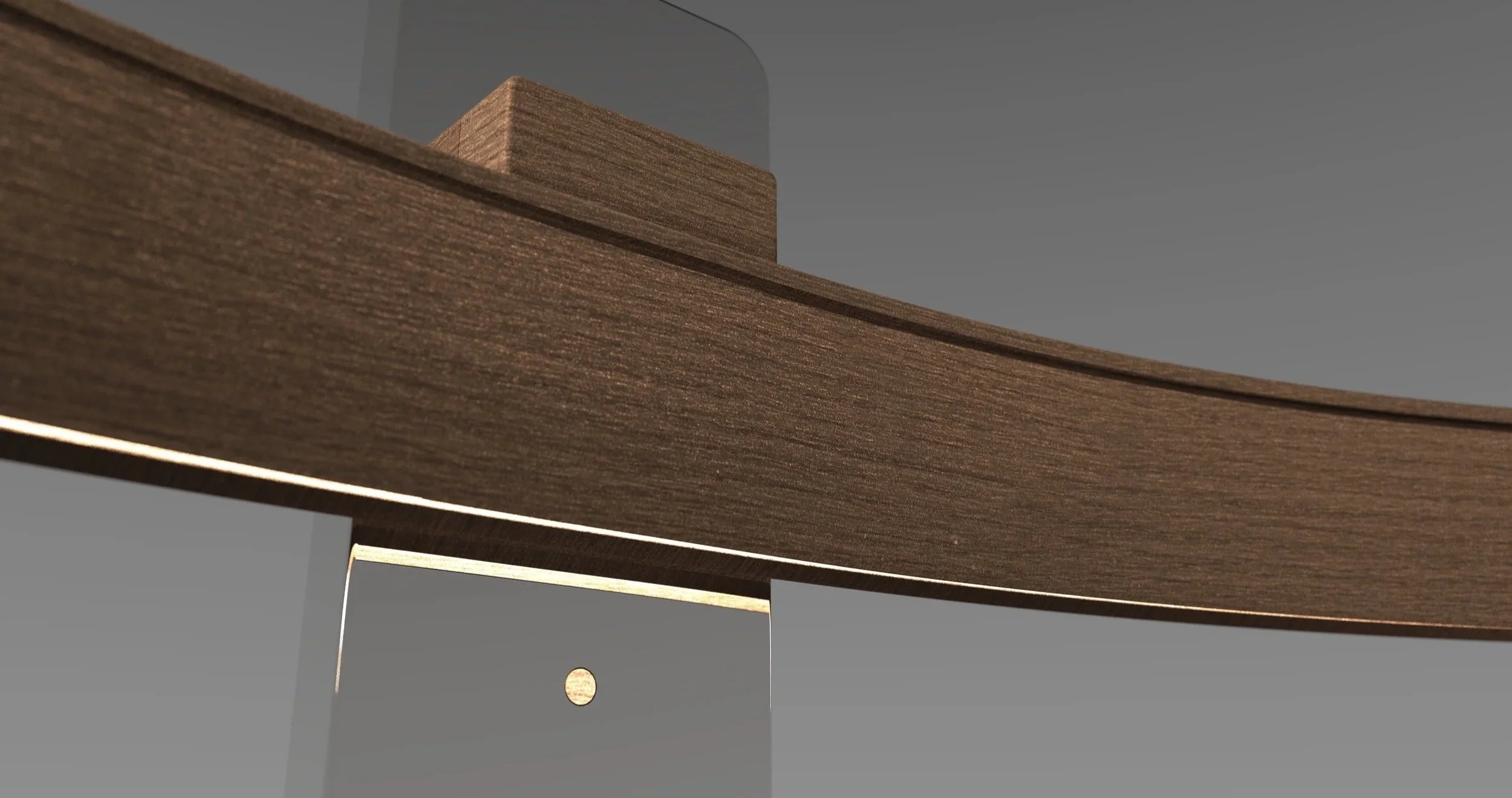 Walnut, or any darker wood is used to give the piece a warmth. Wood is also used because of its flexibility in the main body, being able to bend.