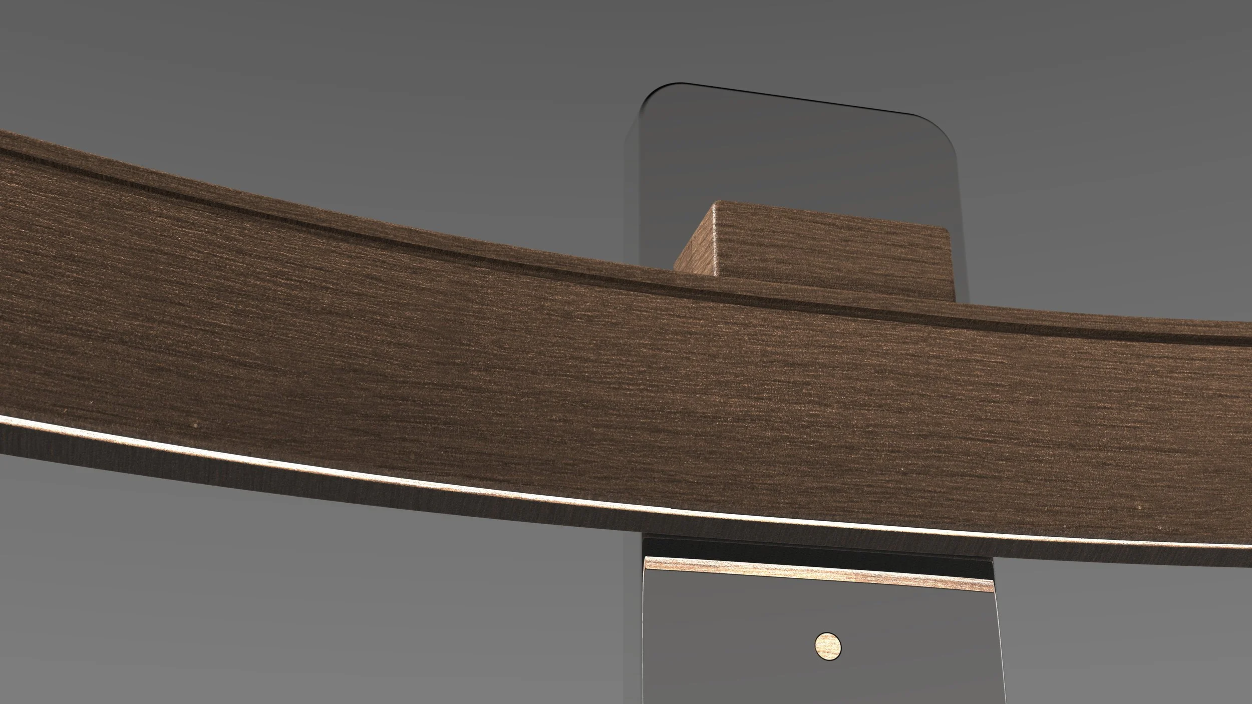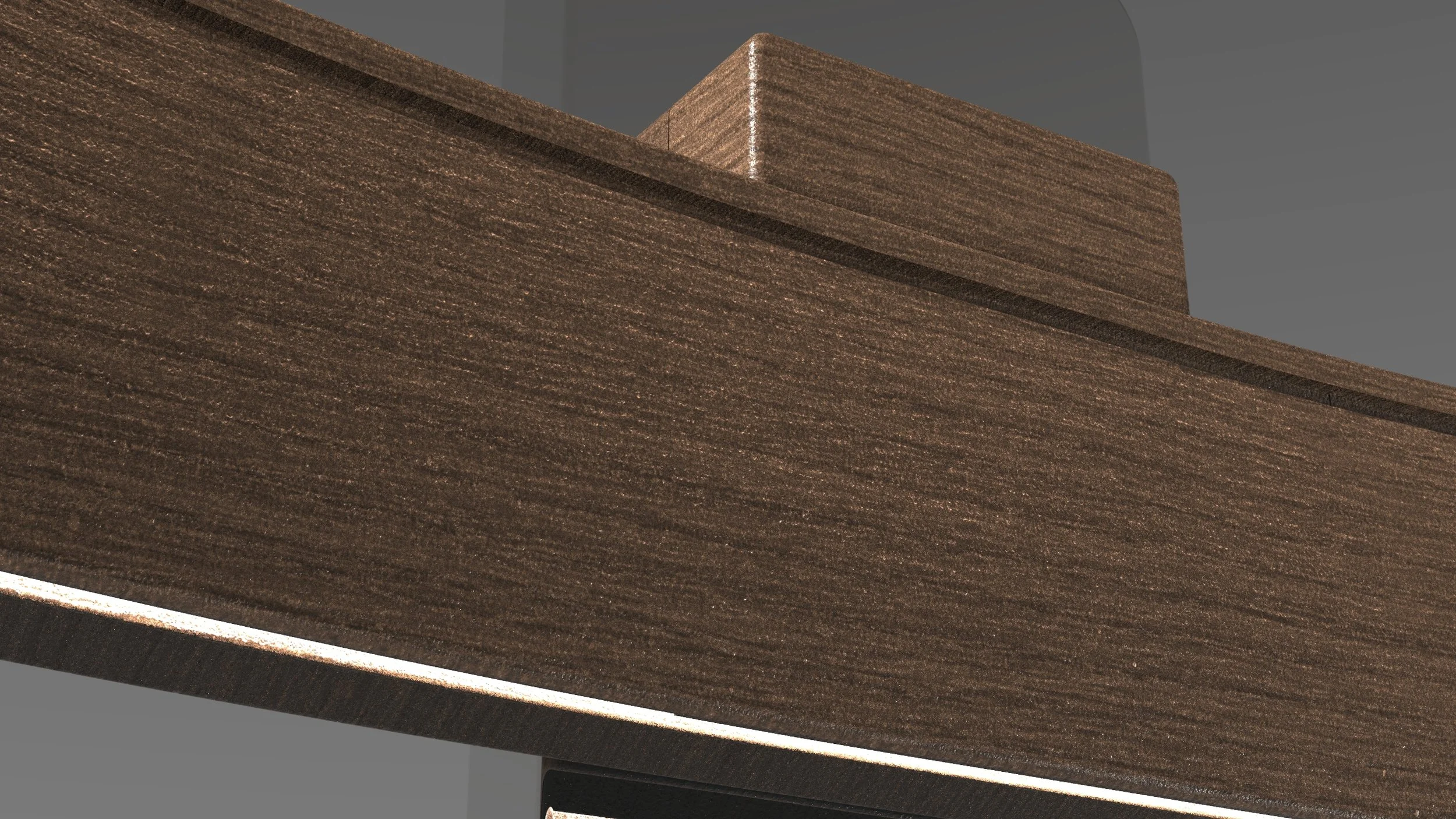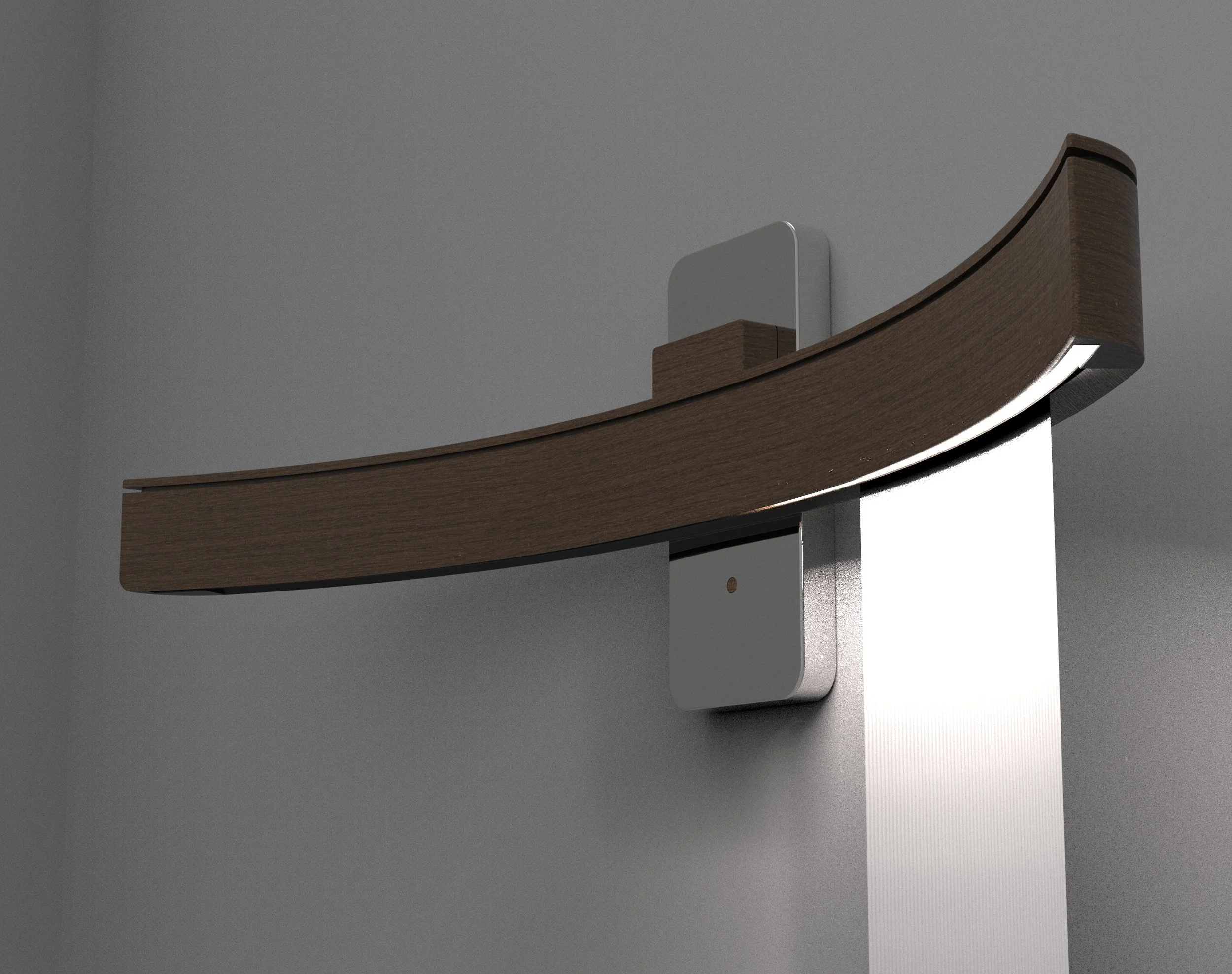 This design features a main wooded, stack laminate body that curves to better show work when seated at a desk, housing 9 IR break beam sensors, an Arduino Nano for control, and 55 steel ball bearings to firmly hold the paper. In addition, a metal bracket that houses the button to turn on and off the lights, a French cleat to mount it to a wall, and serves as the main mount to the body.