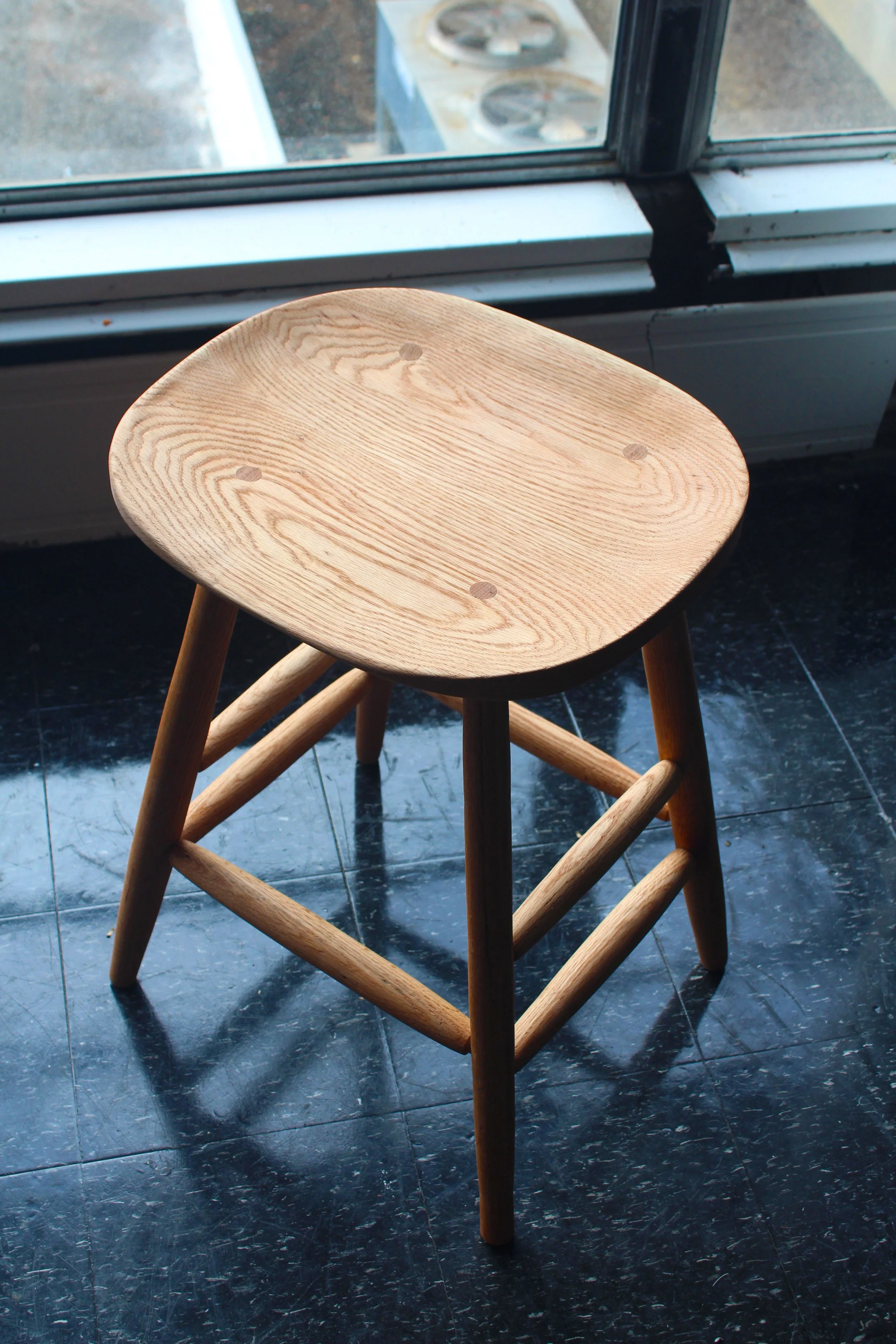 The production of this stool was a fun process to say the least. Learning new skills on top of the ones I already knew was extremely interesting. The stool itself is sturdy, and almost overly structured with the rungs being too thick then needed. In addition to this the stool top, in the process of hand making it, came out too long in the front compared to the back. This however is not too noticeable from many angles. The design itself is post and slab, with some elements that is not normally found in post and slab including the double rungs on the side and the handle on the back. Overall, this was a welcome project to end the semester.